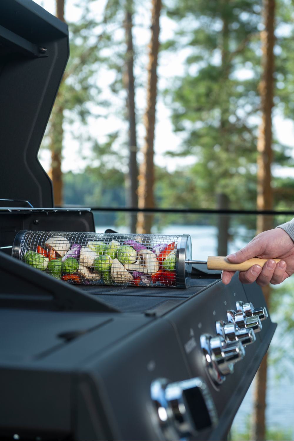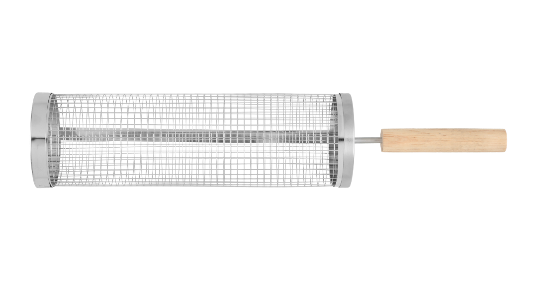 Vridbar grillkorg. Små produkter som ska grillas ramlar inte ner inuti grillen.