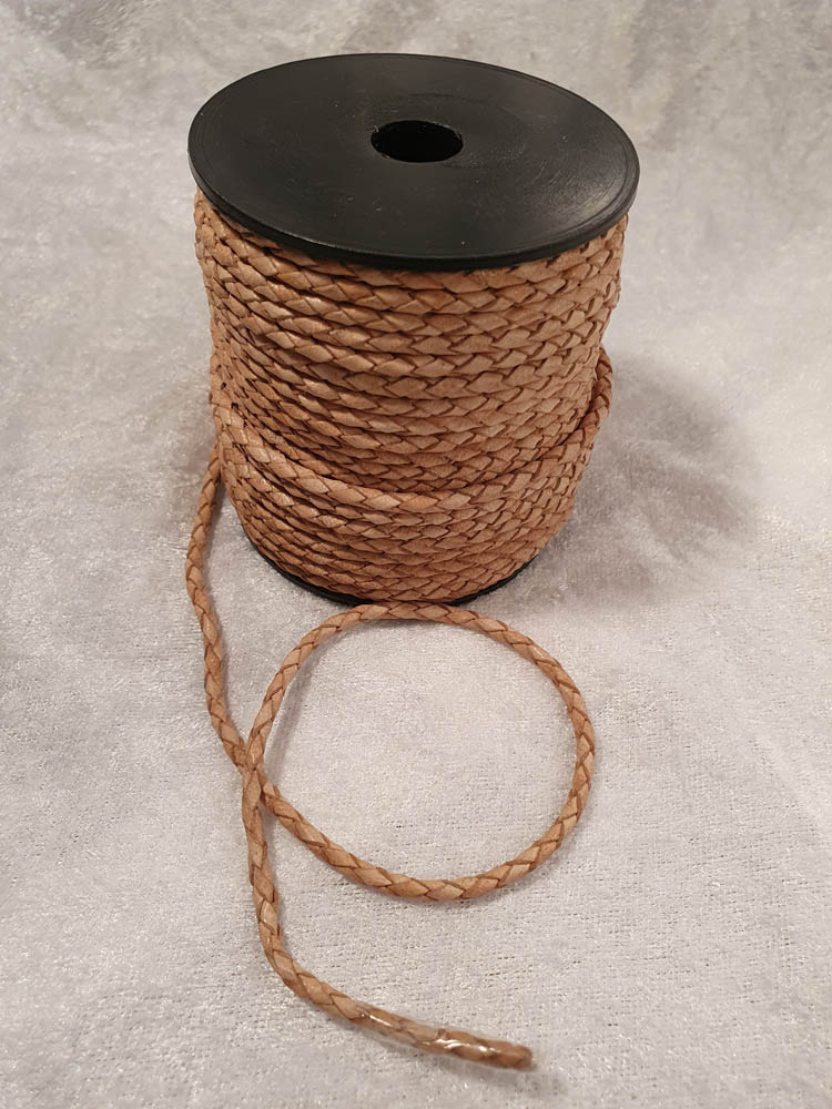 Flätad läderrem natur 3 mm/ rulle 25m